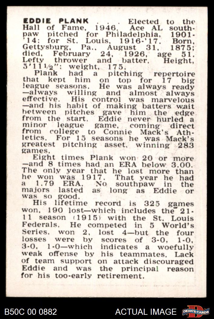 1950 Callahan Hall of Fame Eddie Plank