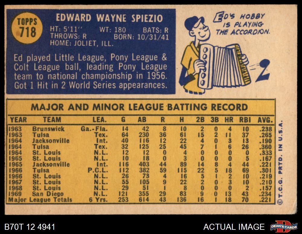 1970 Topps #718 Ed Spiezio 4 - VG/EX