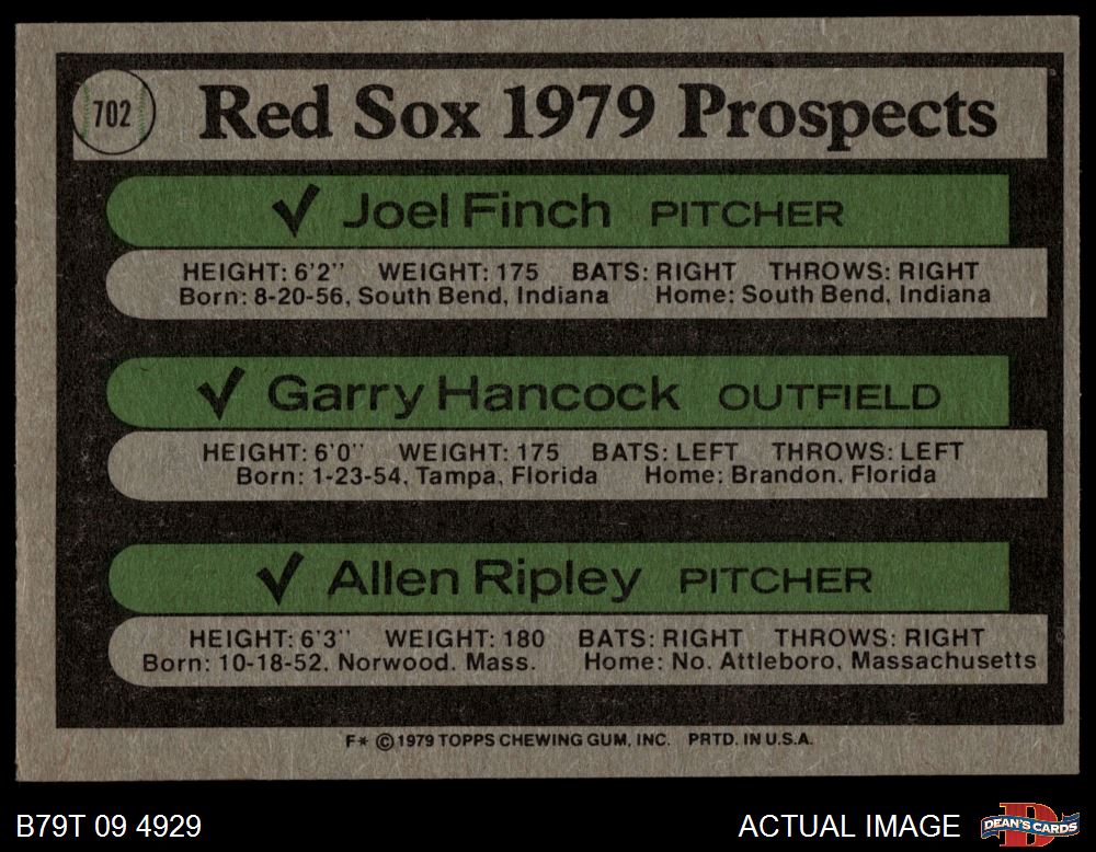 1979 Topps #702 - Joel Finch / Garry Hancock / Allen Ripley Red Sox Prospects 5 - EX