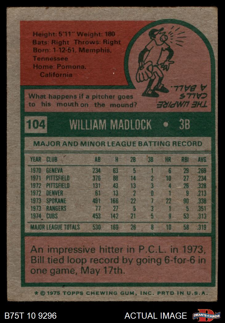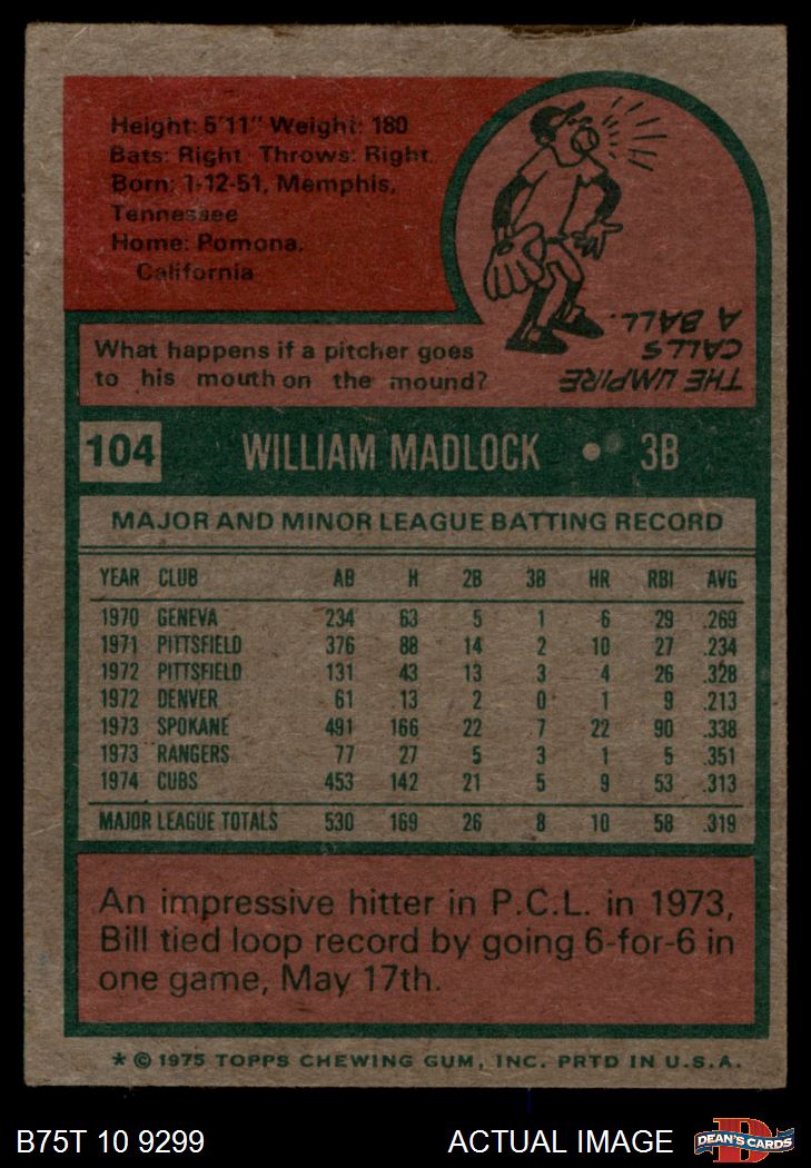 1975 Topps #104 Bill Madlock 1 - POOR