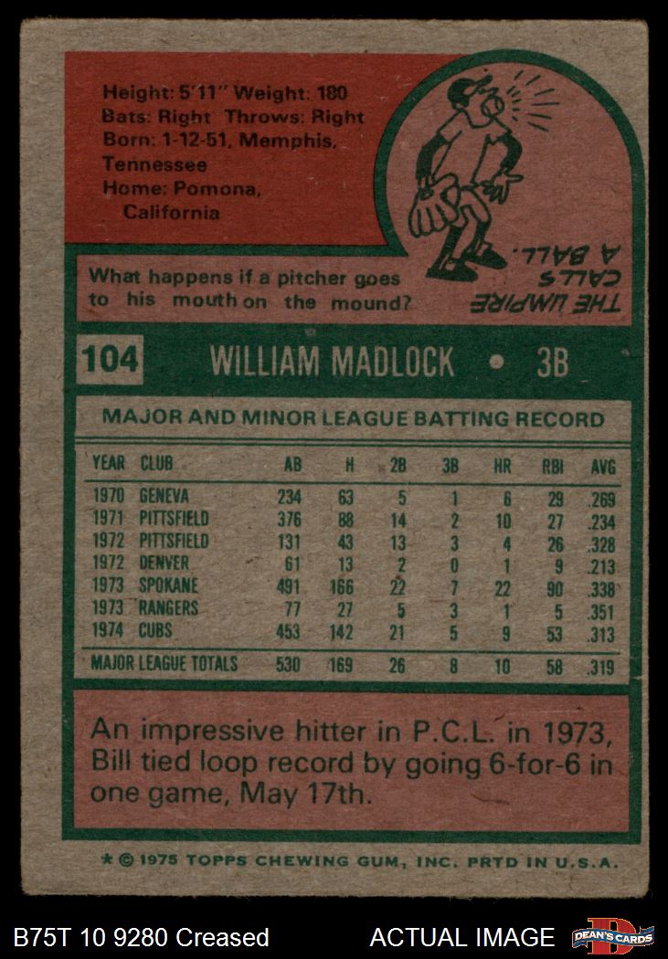 1975 Topps #104 Bill Madlock 2 - GOOD