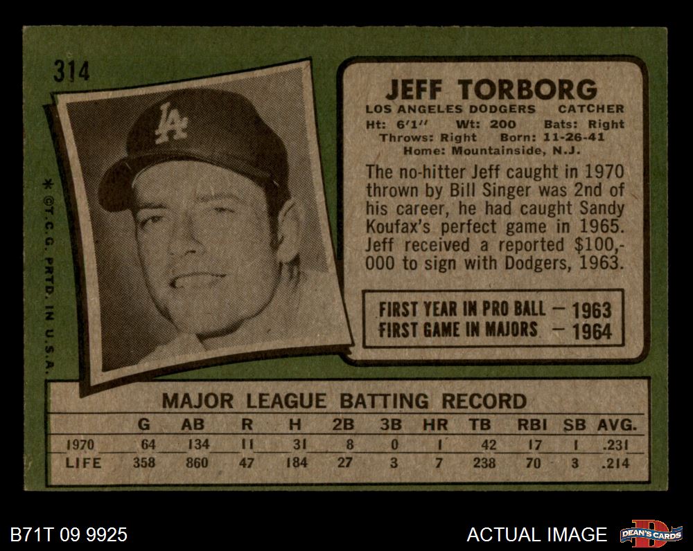 1971 Topps #314 Jeff Torborg 6 - EX/MT