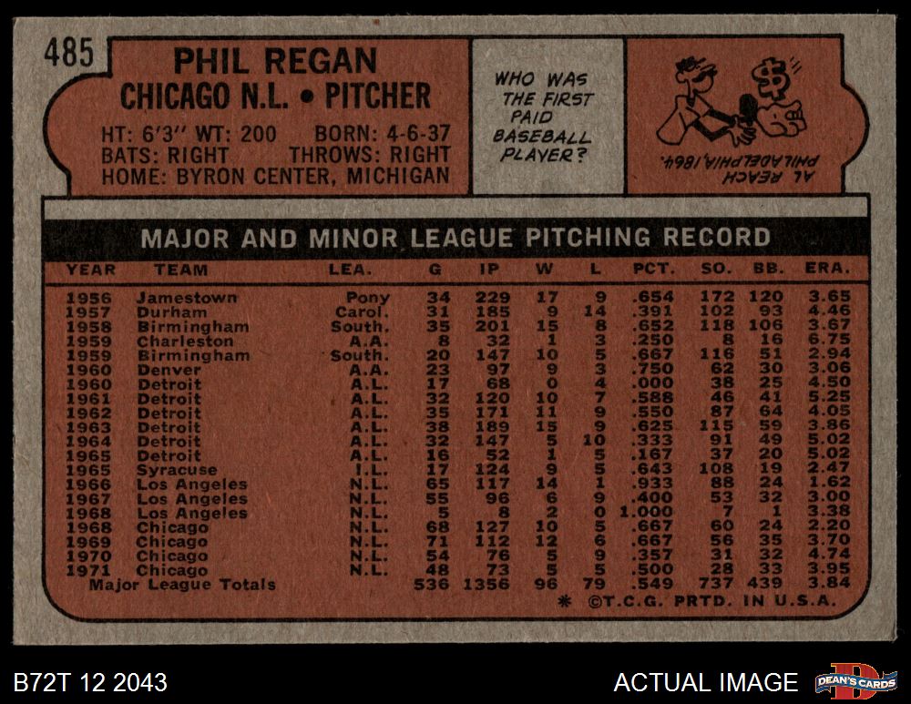 1972 Topps #485 Phil Regan 4 - VG/EX