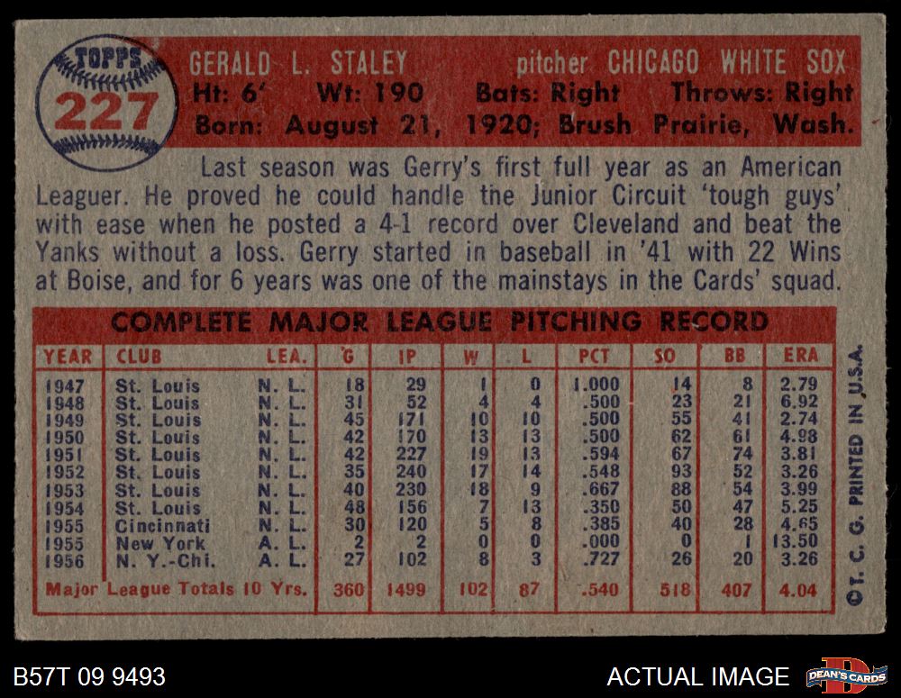 1957 Topps #227 Jerry Staley 4.5 - VG/EX+
