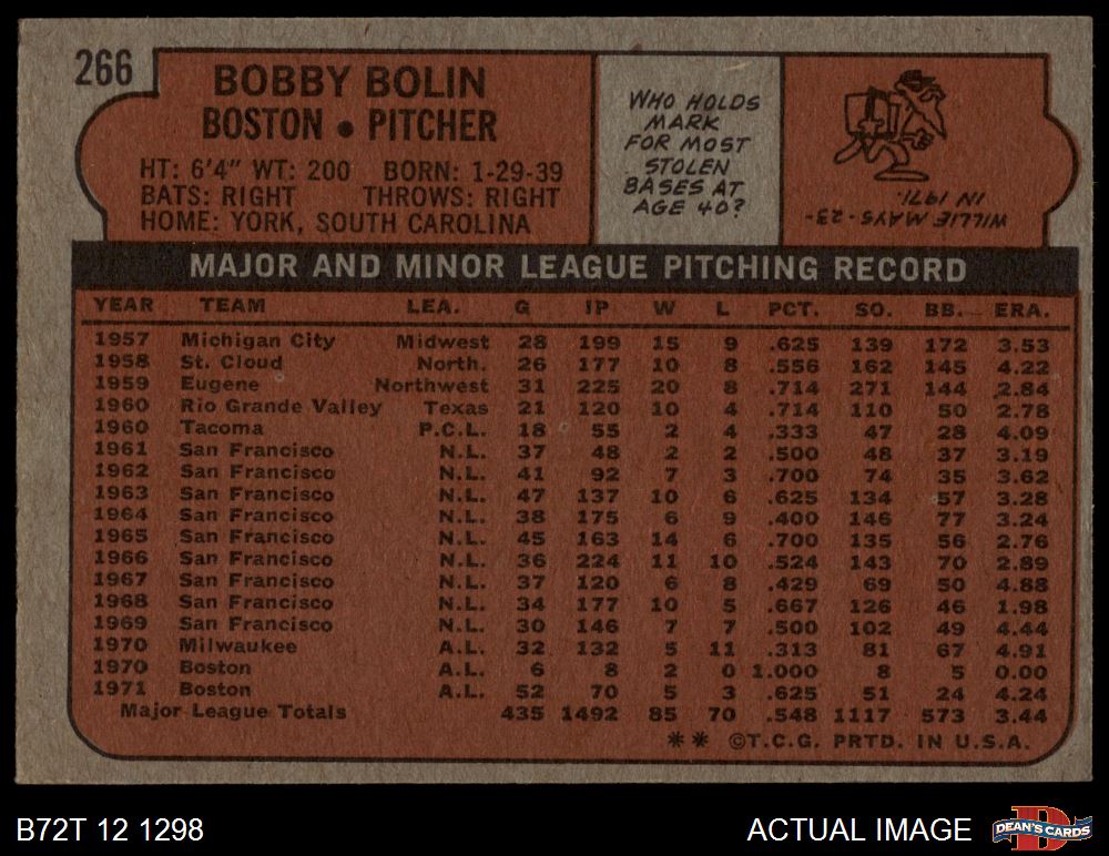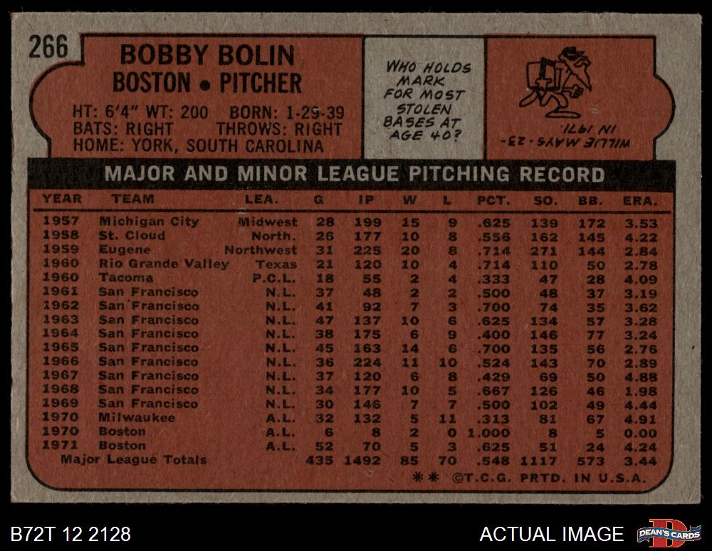 1972 Topps #266 Bobby Bolin 4 - VG/EX