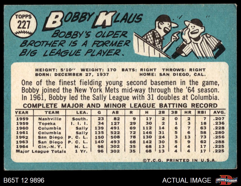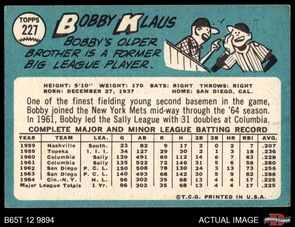 1965 Topps #227 Bobby Klaus 4.5 - VG/EX+