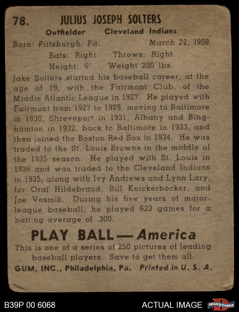 1939 Play Ball #78 Julius Solters 1 - POOR