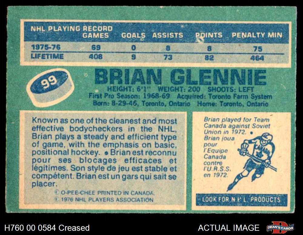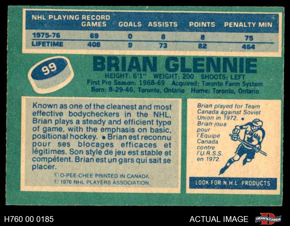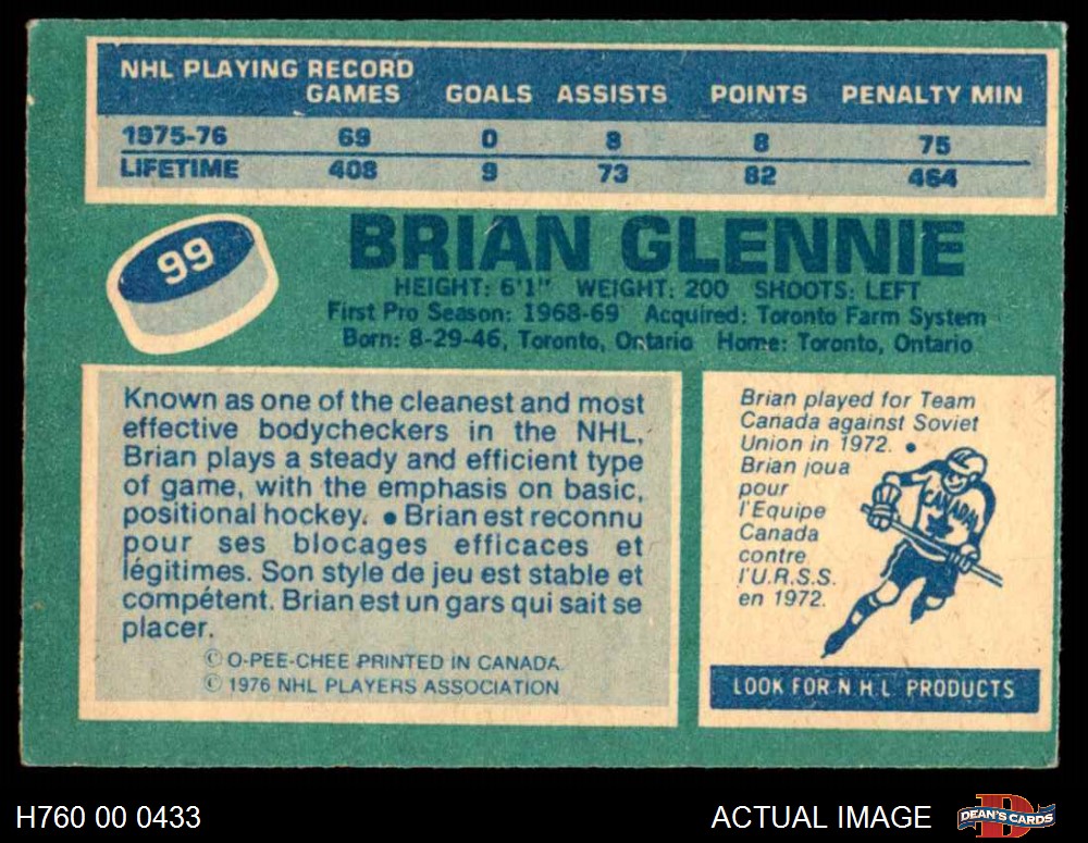 1976 O-Pee-Chee NHL #99 Brian Glennie