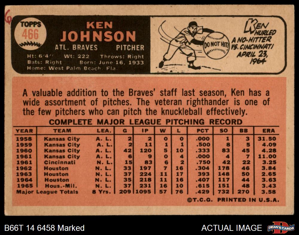 1966 Topps #466 Ken Johnson 1.5 - FAIR