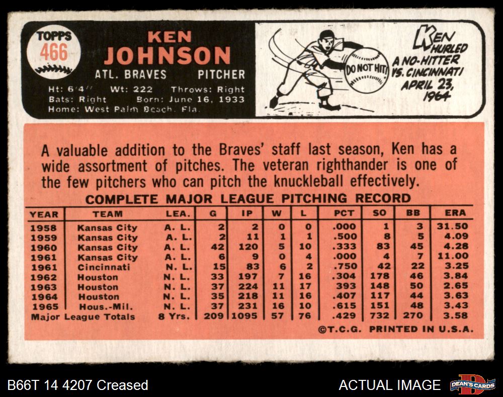 1966 Topps #466 Ken Johnson 2 - GOOD