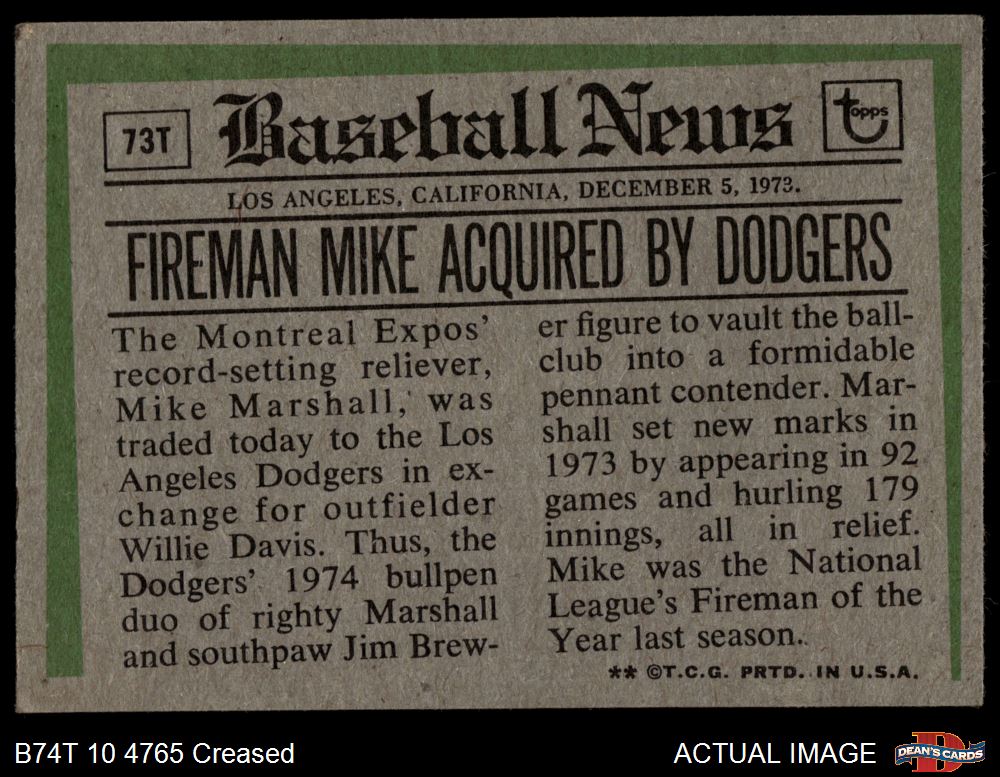 1974 Topps #73 T - Mike Marshall Traded 3.5 - VG+