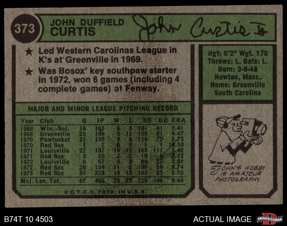 1974 Topps #373 John Curtis 3 - VG