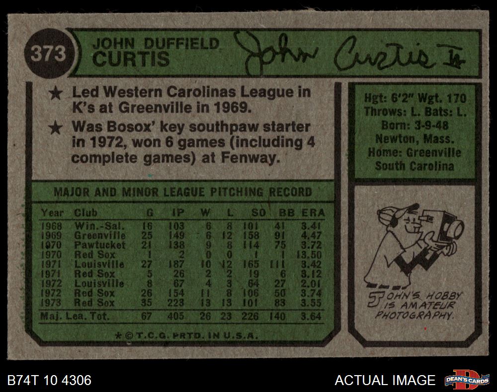 1974 Topps #373 John Curtis 4 - VG/EX
