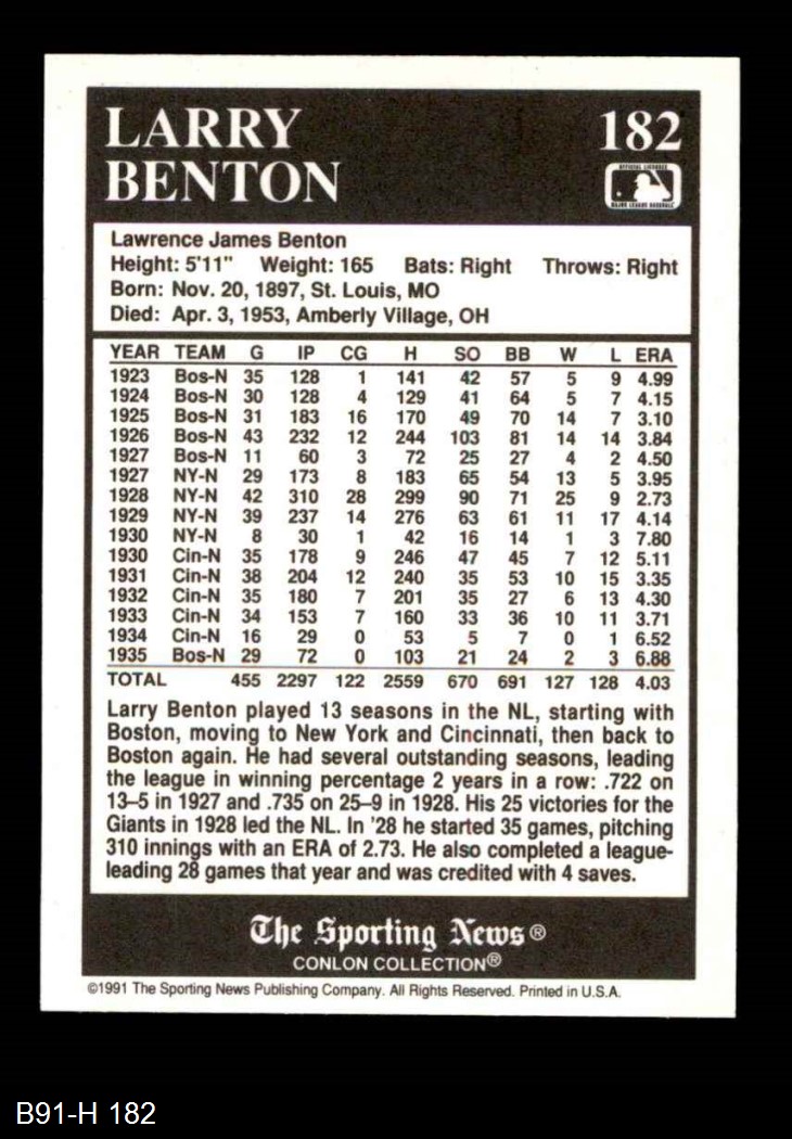 1991 Conlon #182 Larry Benton 8 - NM/MT
