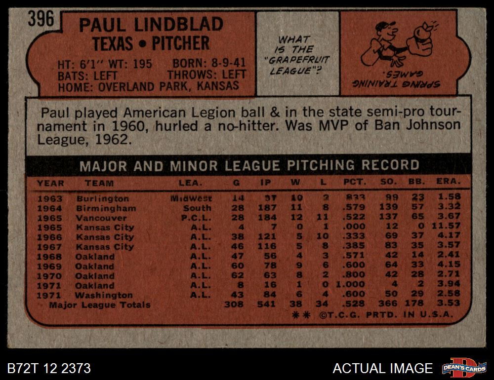 1972 Topps #396 Paul Lindblad 2 - GOOD