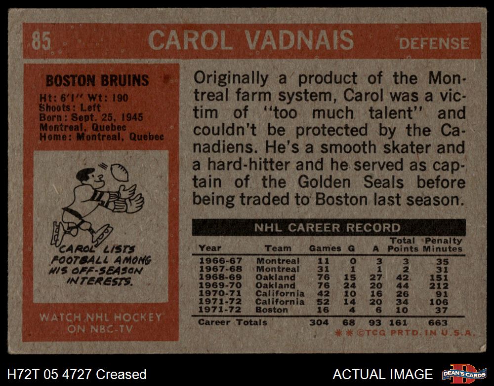 1972 Topps #85 Carol Vadnais 3 - VG