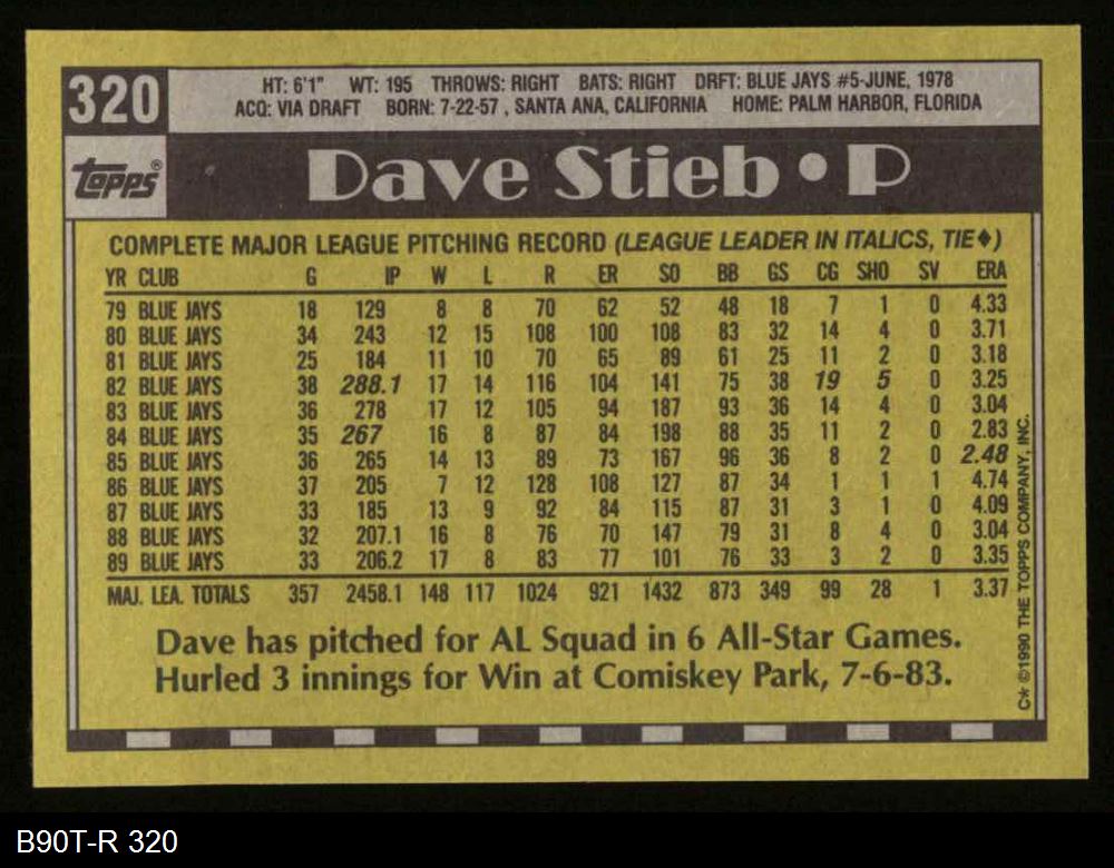 1990 Topps #320 Dave Stieb
