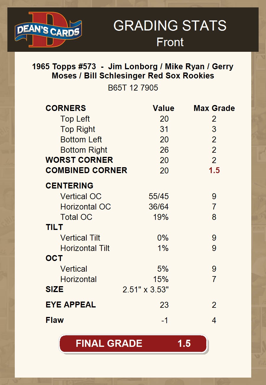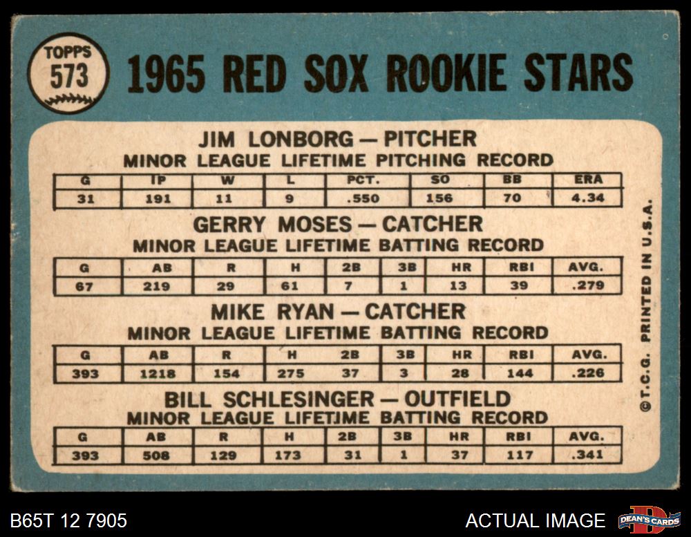 1965 Topps #573 - Jim Lonborg / Mike Ryan / Gerry Moses / Bill Schlesinger Red Sox Rookies 1.5 - FAIR