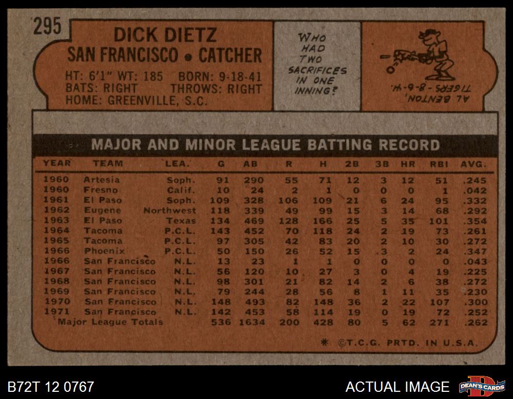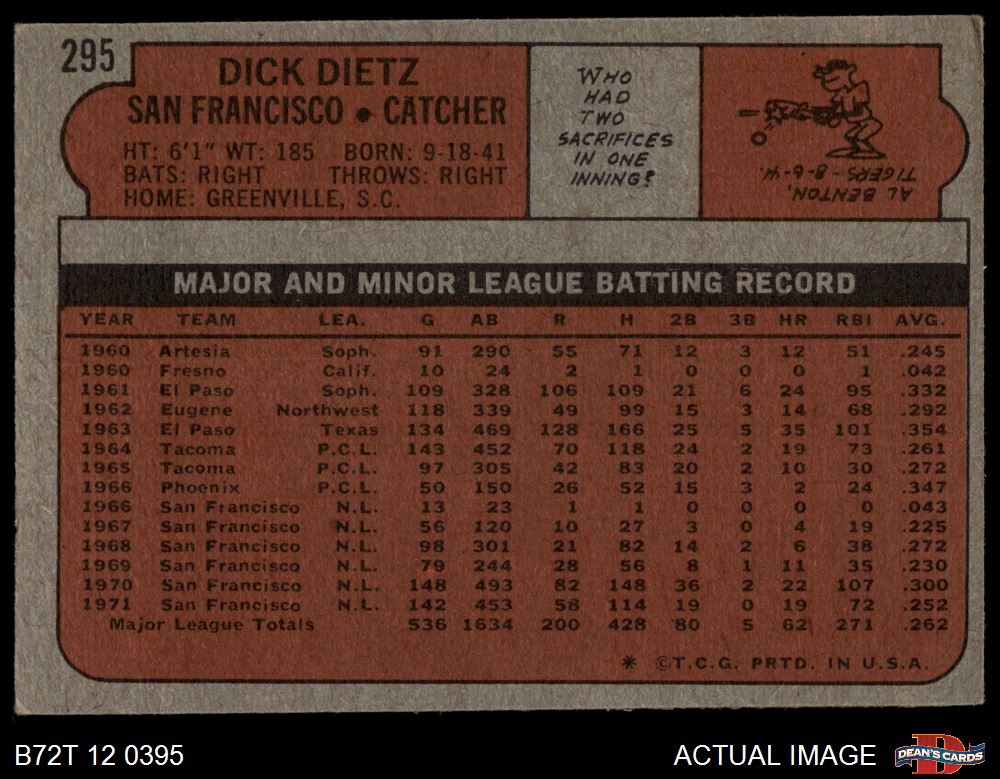 1972 Topps #295 Dick Dietz 4 - VG/EX