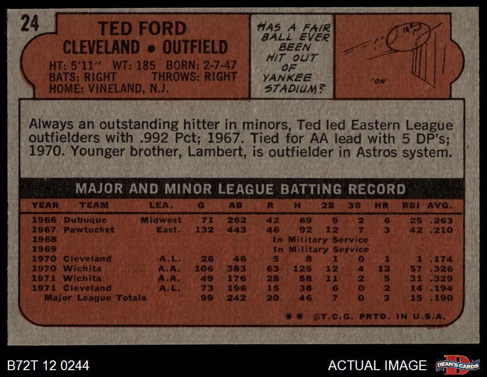 1972 Topps #24 Ted Ford 5 - EX