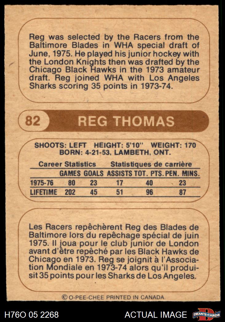 1976 O-Pee-Chee WHA #82 Reg Thomas