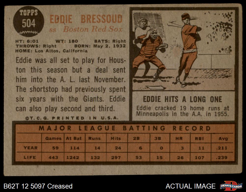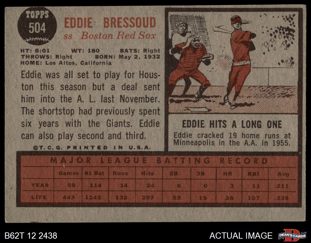 1962 Topps #504 Eddie Bressoud 2 - GOOD