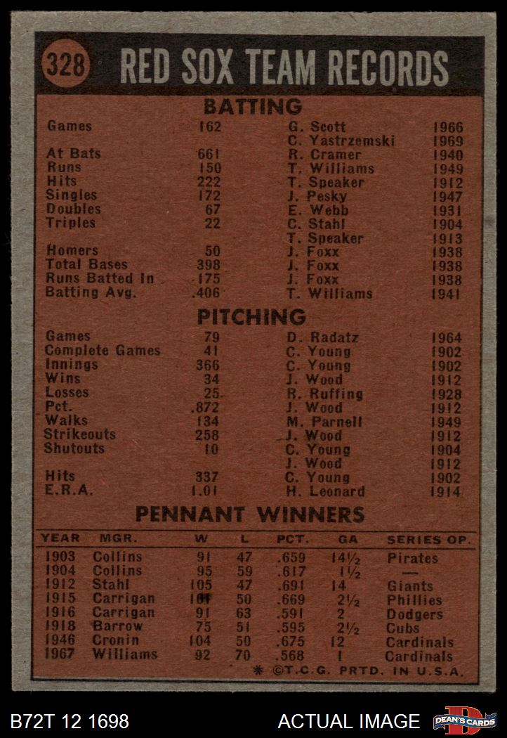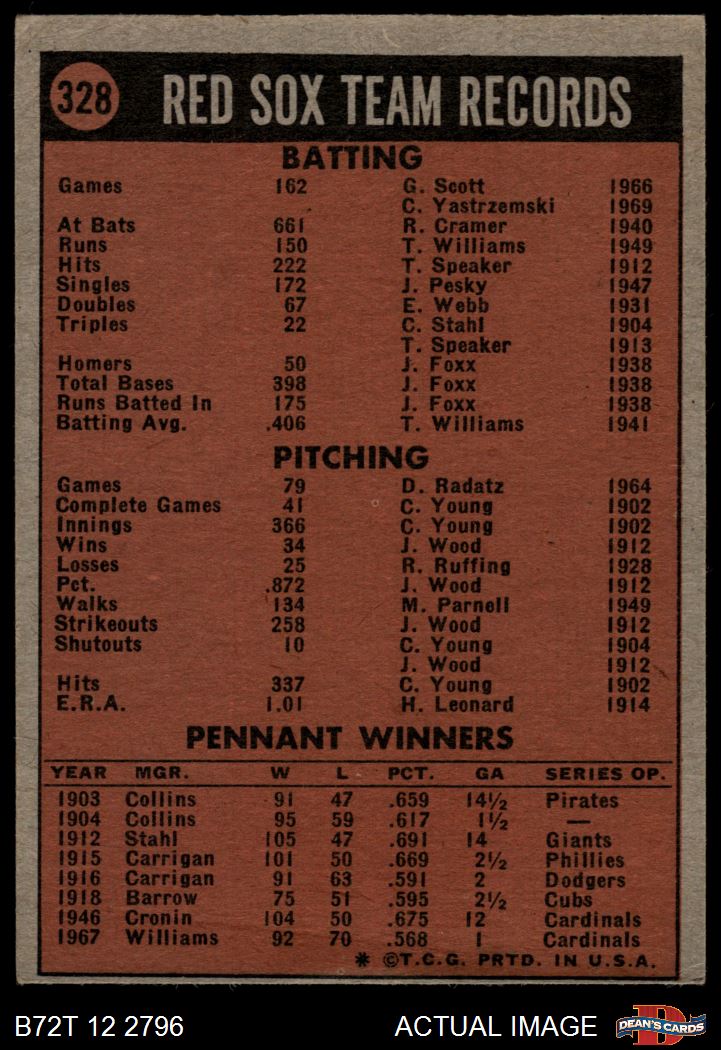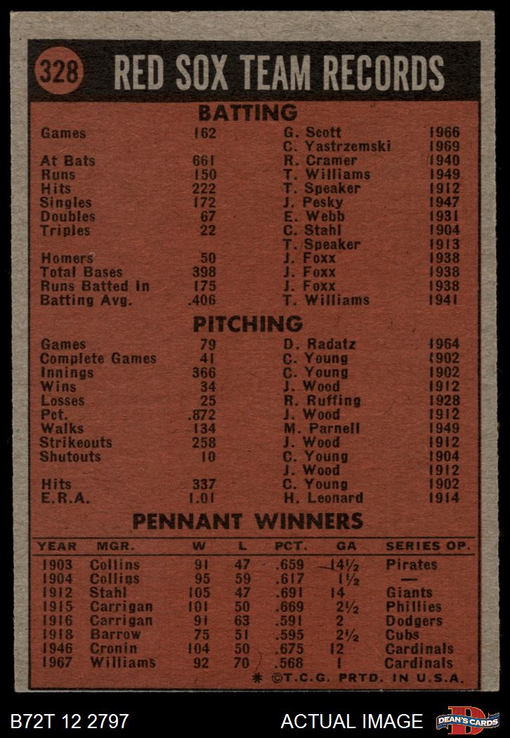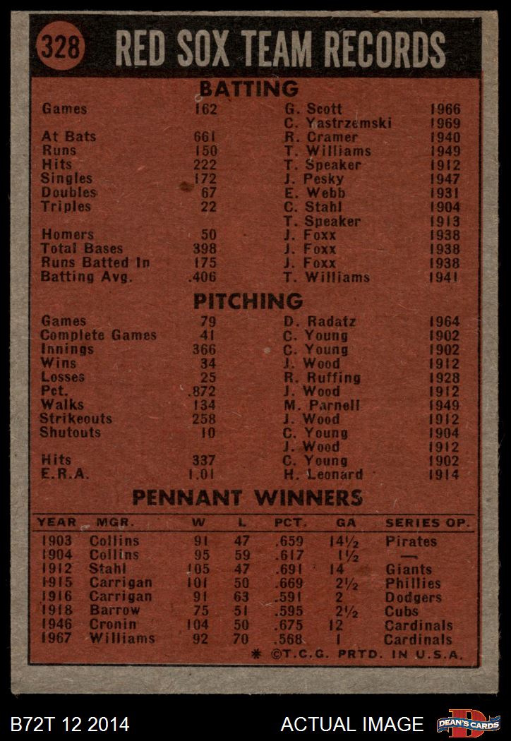 1972 Topps #328 Red Sox Team