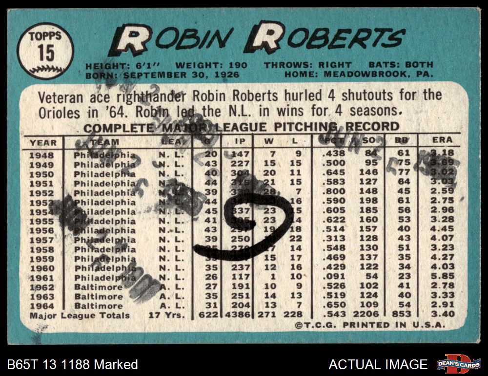 1965 Topps #15 Robin Roberts 1.5 - FAIR
