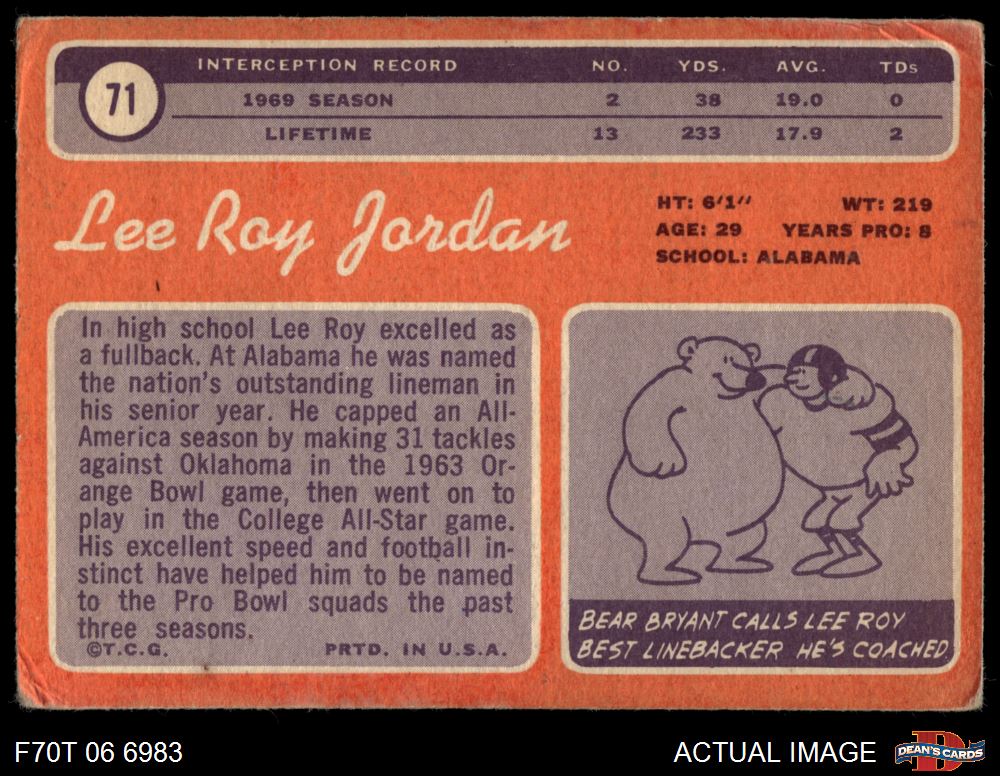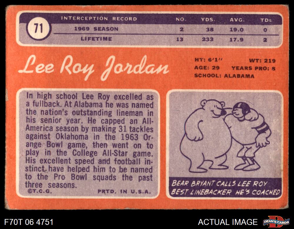1970 Topps #71 Lee Roy Jordan 1 - POOR