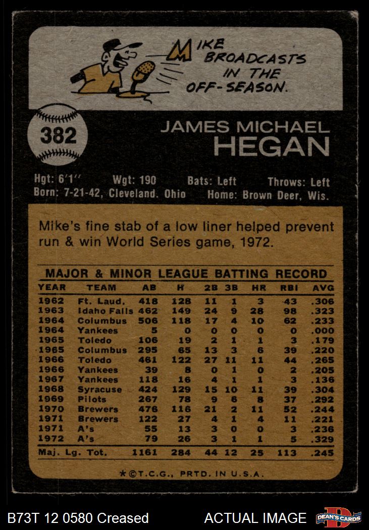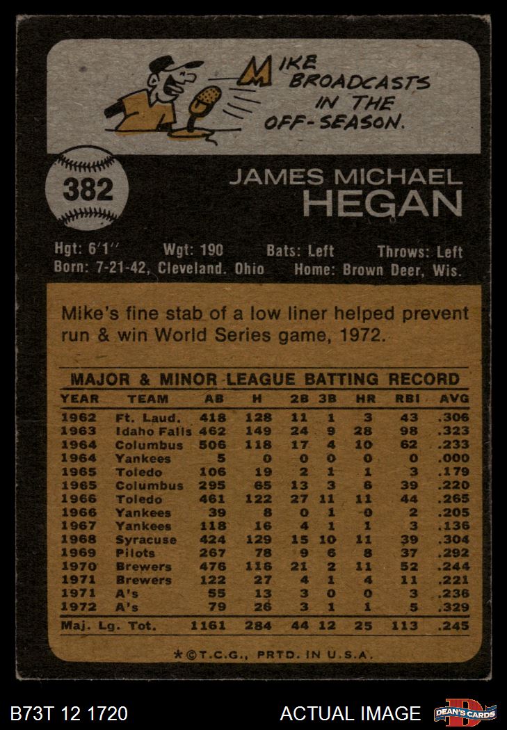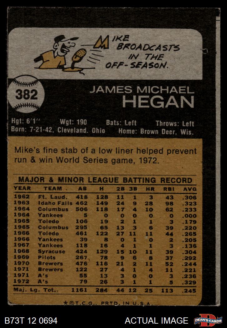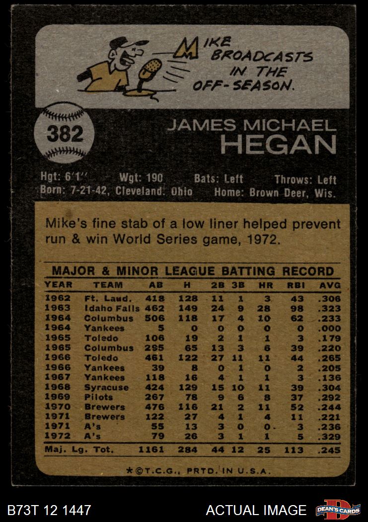 1973 Topps #382 Mike Hegan