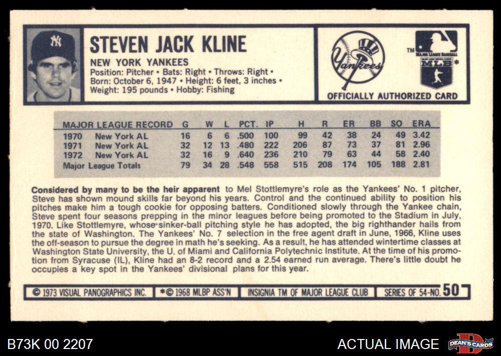 1973 Kellogg's #50 Steve Kline 8 - NM/MT