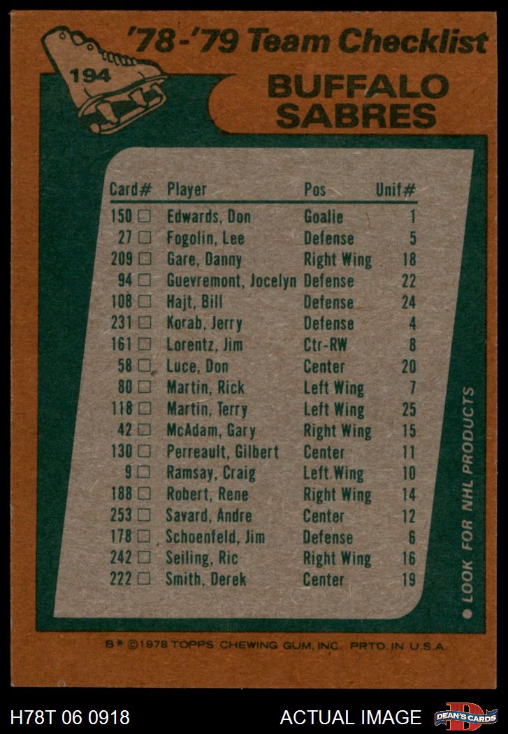 1978 Topps #194 Sabres Team Checklist 8 - NM/MT