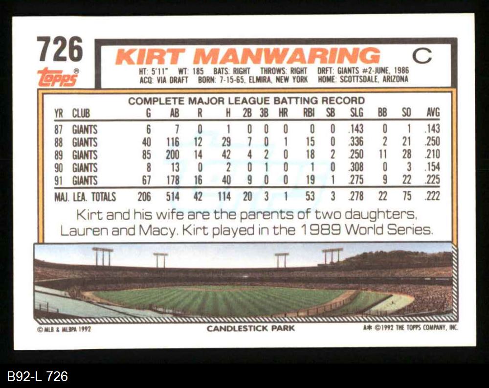 1992 Topps #726 Kirt Manwaring 8 - NM/MT