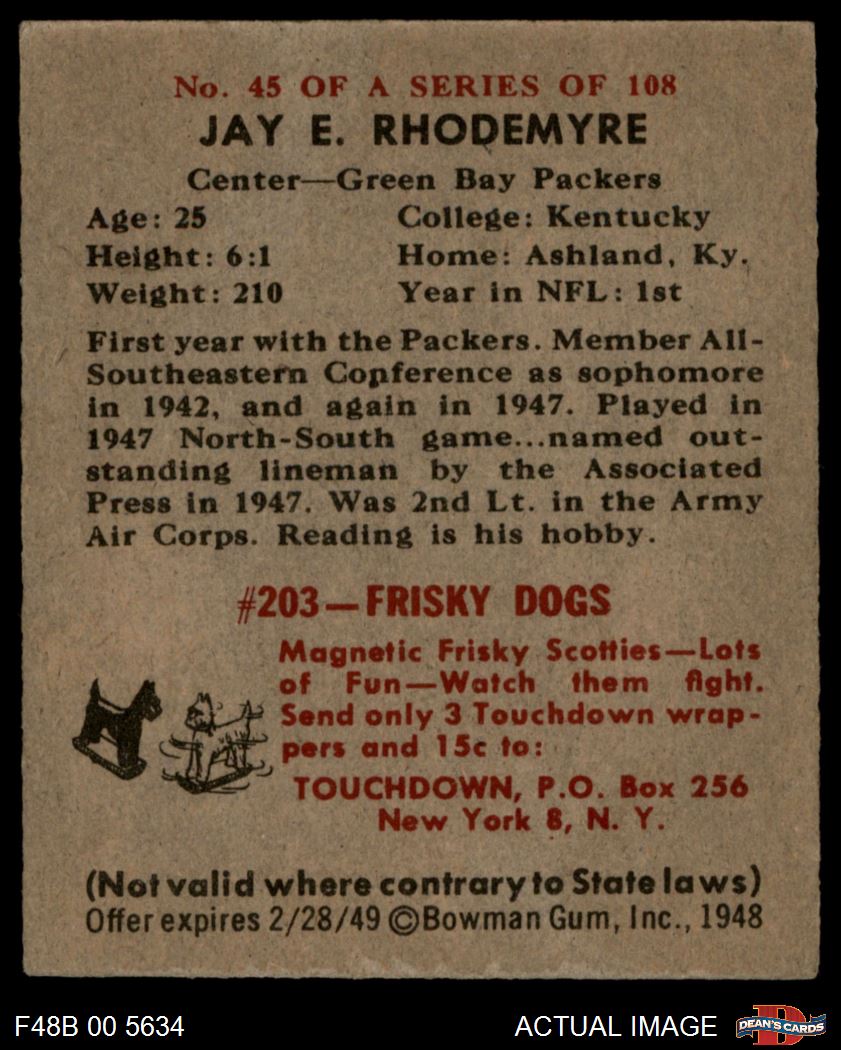 1948 Bowman #45 Jay Rhodemyre 5 - EX