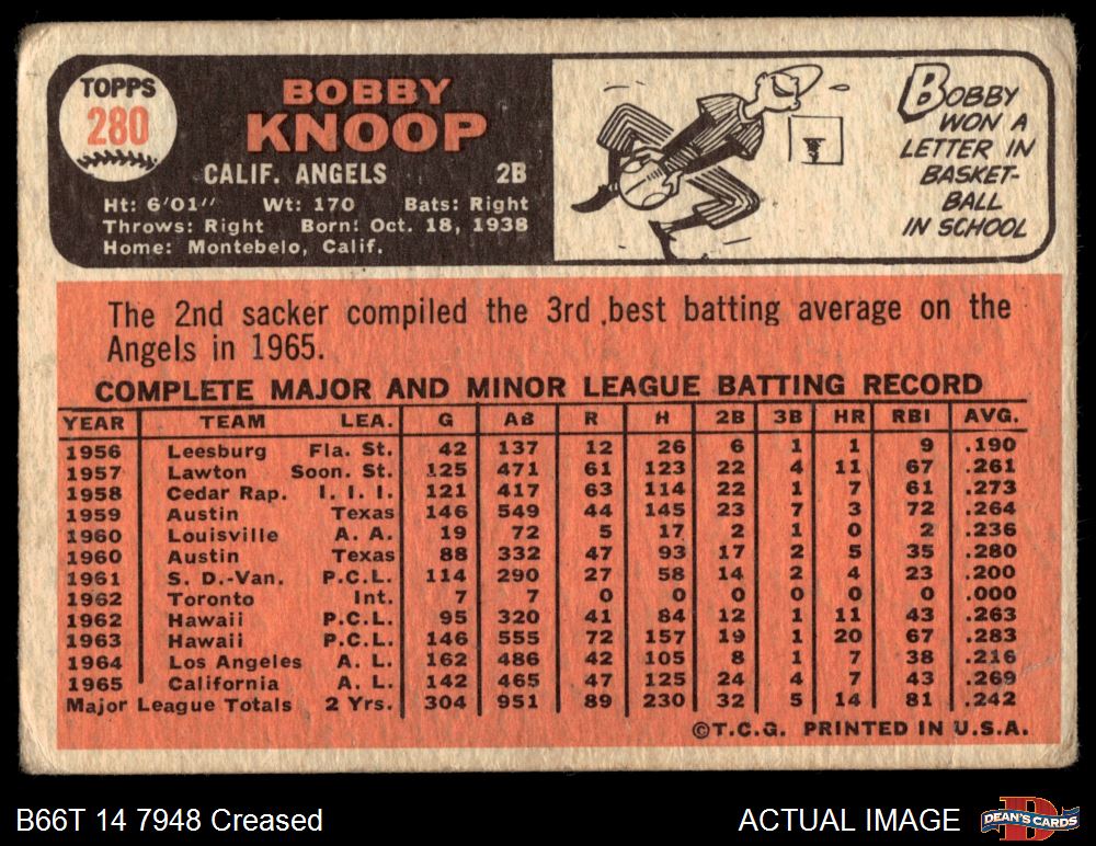 1966 Topps #280 Bobby Knoop