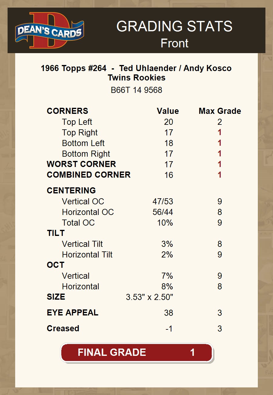1966 Topps #264 - Ted Uhlaender / Andy Kosco Twins Rookies 1 - POOR