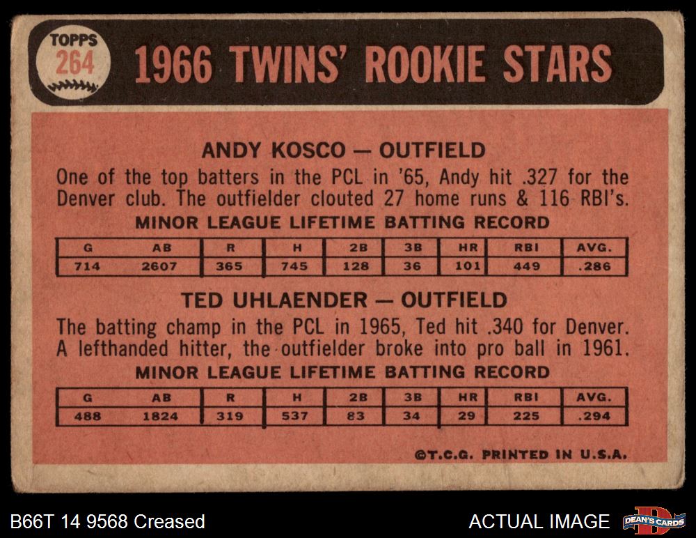 1966 Topps #264  -  Ted Uhlaender / Andy Kosco Twins Rookies Front Thumbnail