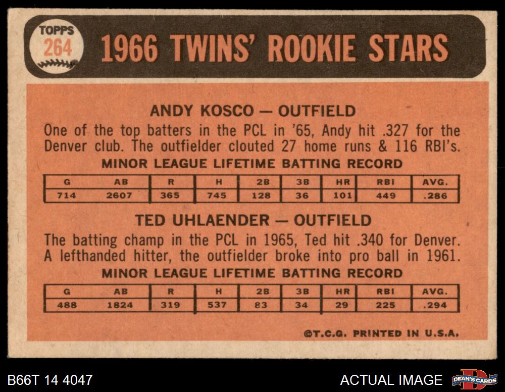 1966 Topps #264 - Ted Uhlaender / Andy Kosco Twins Rookies 4 - VG/EX