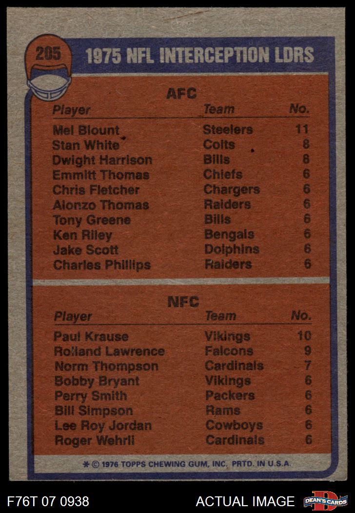 1976 Topps #205 - Mel Blount / Paul Krause Interception Leaders 3 - VG