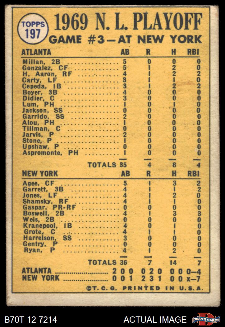 1970 Topps #197 - Nolan Ryan / Wayne Garrett 1969 NL Playoff - Game 3 - Ryan Saves the Day 3 - VG