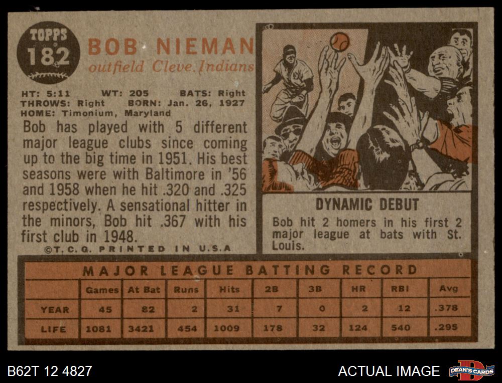 1962 Topps #182 GRN Bob Nieman 6 - EX/MT