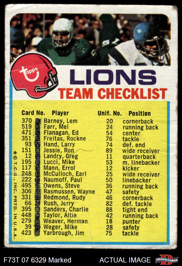 1973 Topps Football Cards (11,997 available)1973 Topps Checklist Lions (70 available)