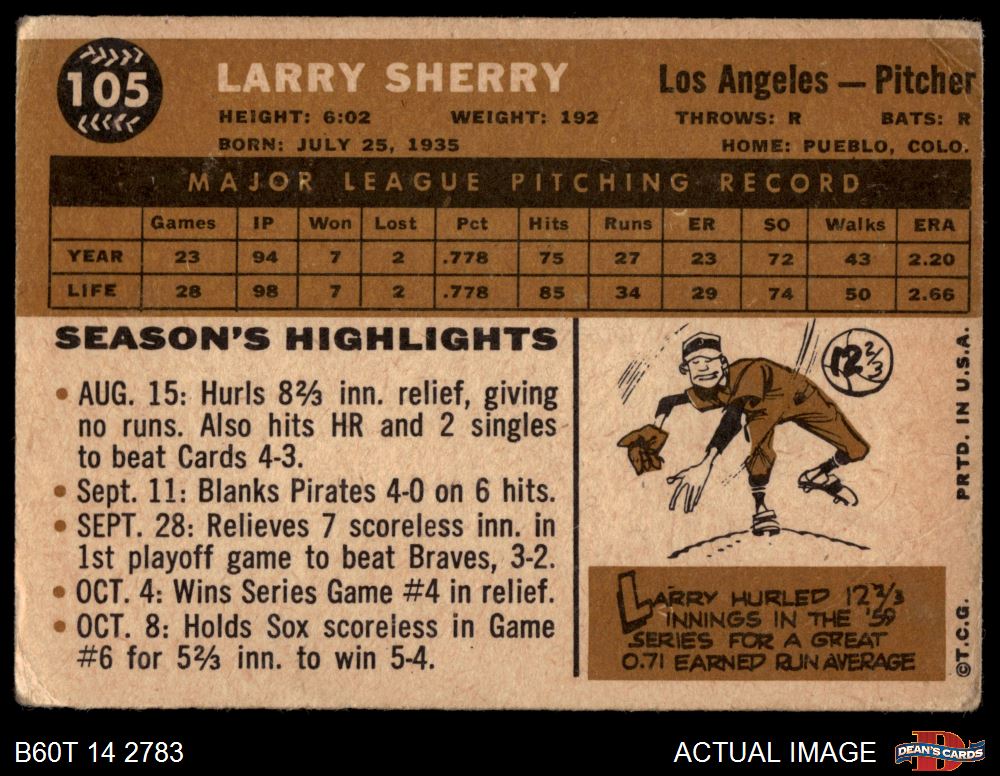 1960 Topps #105 Larry Sherry 1.5 - FAIR