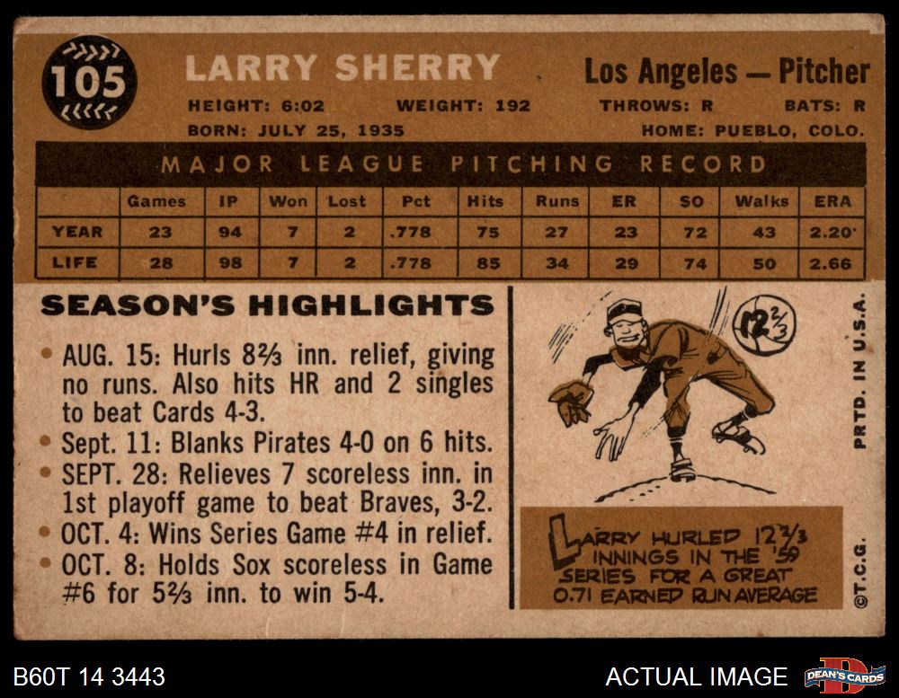 1960 Topps #105 Larry Sherry