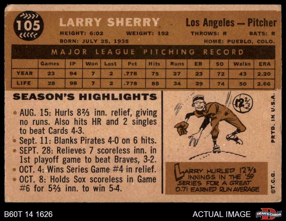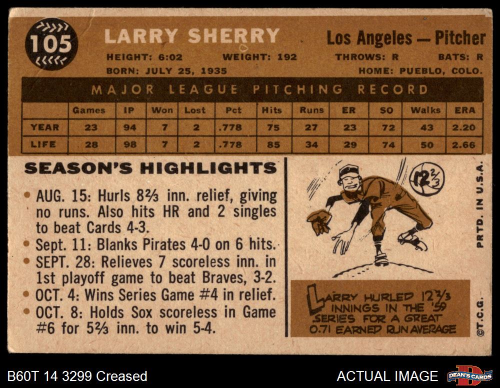 1960 Topps #105 Larry Sherry 2 - GOOD