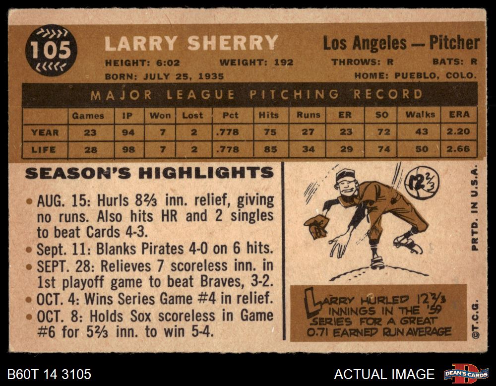 1960 Topps #105 Larry Sherry 3 - VG