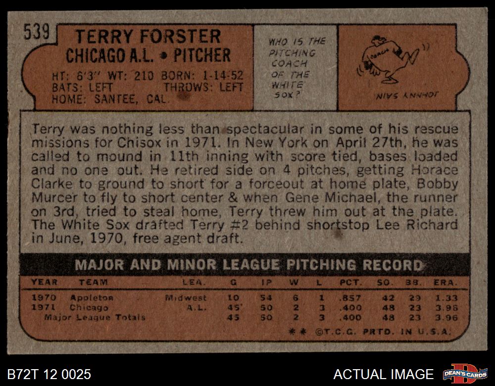 1972 Topps #539 Terry Forster 5 - EX