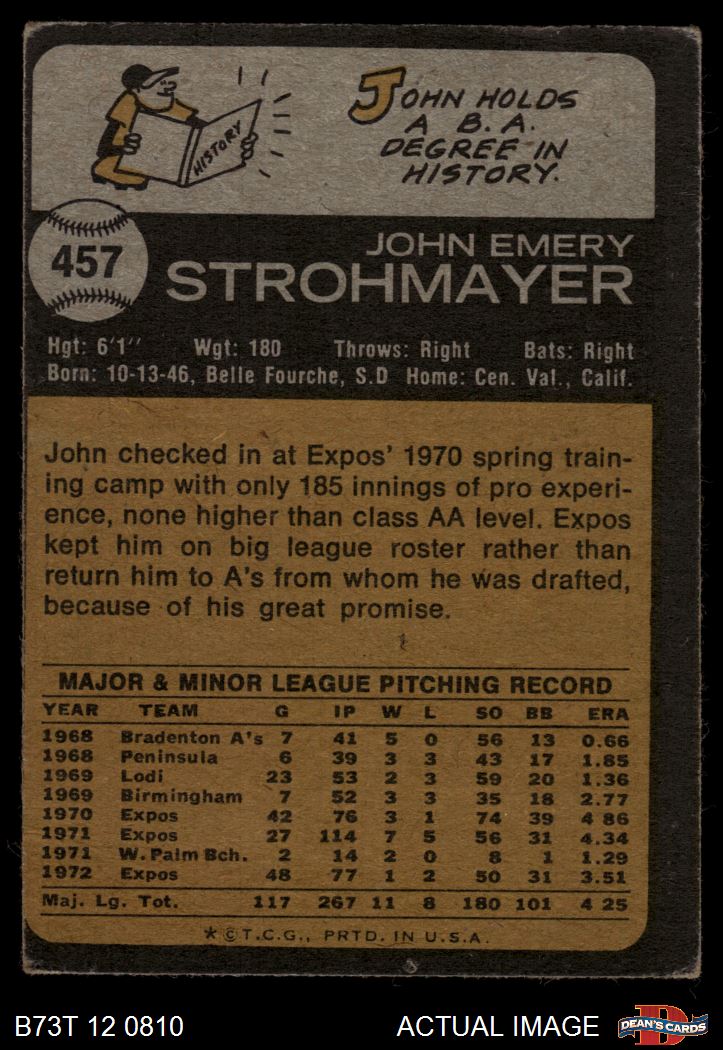 1973 Topps #457 John Strohmayer Front Thumbnail