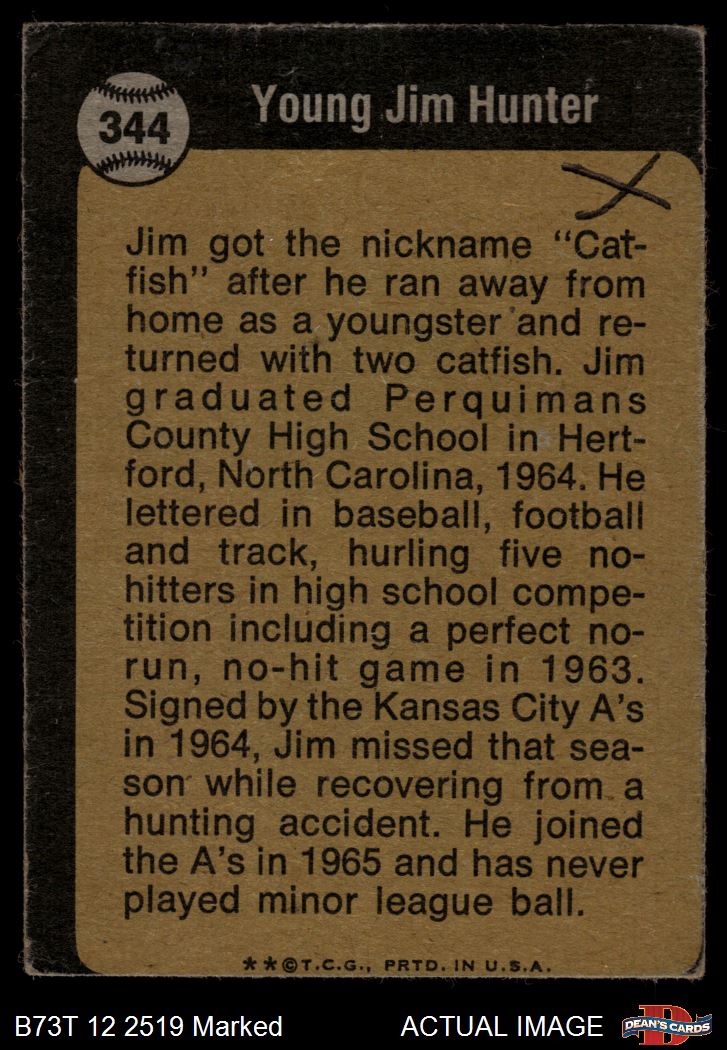 1973 Topps #344 - Catfish Hunter Boyhood Photo 1 - POOR