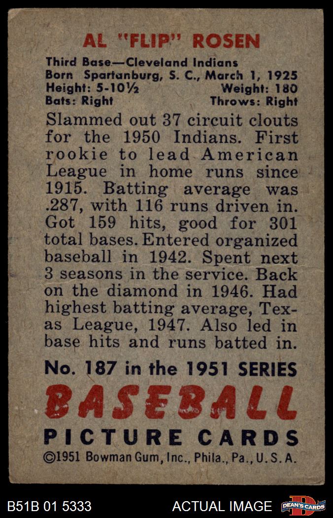 1951 Bowman #187 Al Rosen 2 - GOOD